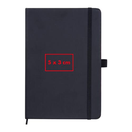 - Carnet A5 avec couverture en PU, marque-page, ruban de fermeture, passant pour stylo à bille et 120 pages lignées en papier de roche