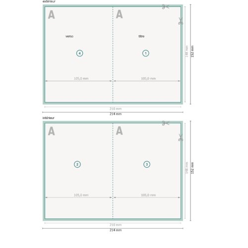 • Veuillez assembler les volets du dépliant. Votre maquette doit se constituer de deux pages en tout - un côté extérieur et un côté intérieur - cf. fiche technique