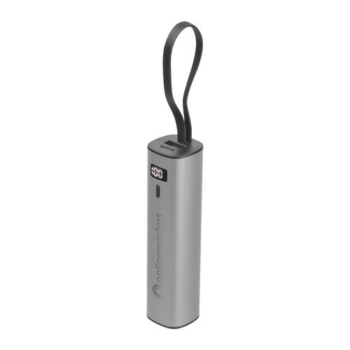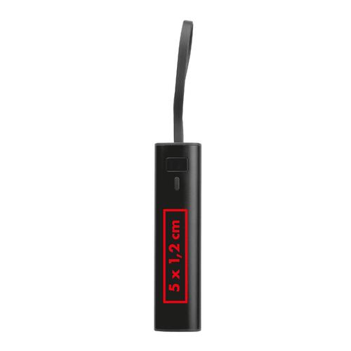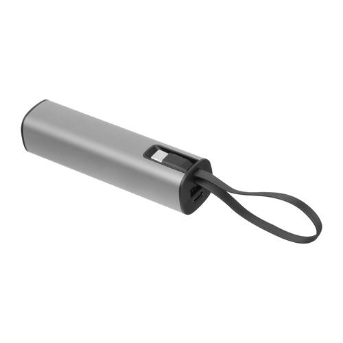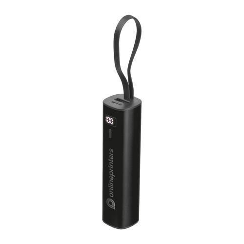 • Powerbank en aluminium avec une batterie Li-Ion de 5.000 mAh, un indicateur de charge et un câble de charge USB-C intégré