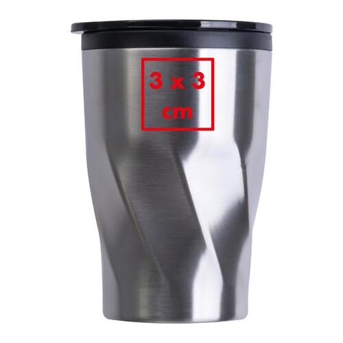 - Gobelet Termo à double paroi en acier inoxydable avec intérieur en plastique (PP), un couvercle avec fermeture à glissière ainsi qu'une contenance de 350 ml