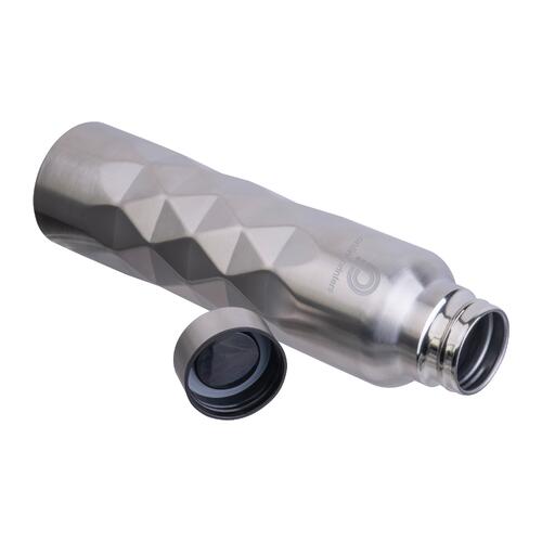 - Gourde à simple paroi en acier inoxydable 304 recyclé avec dragonne sur le couvercle et une contenance de 1000 ml