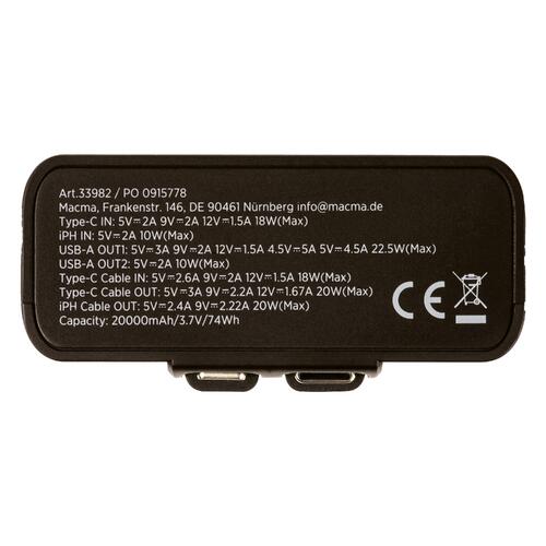• Impressionnante capacité de 20 000 mAh pour une alimentation mobile étendue
