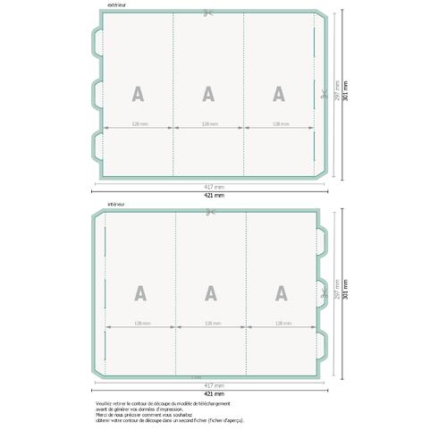 - Format de données (incl. 2 mm fond perdu) : 42,1 x 30,1 cm