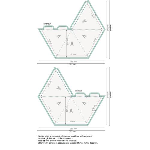 Exigences relatives aux fichiers d'impression Pyramide petite, 4 côtés