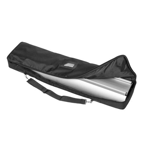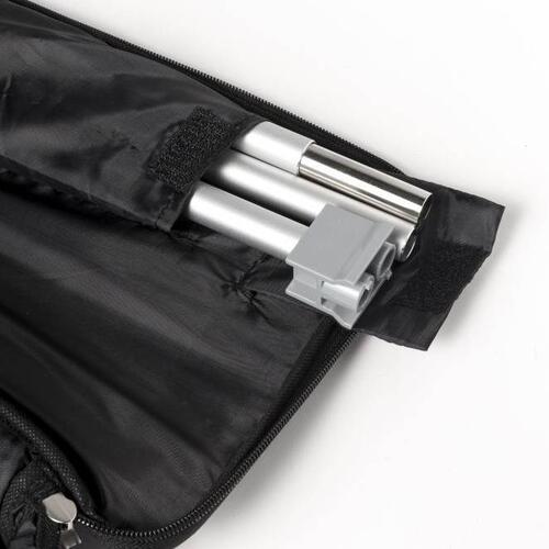 - Système standard roll-up en aluminium avec bannière imprimée ; "tiges de tente" en 3 parties et sac de transport confortable