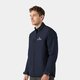 Veste softshell bleue pour homme avec fermeture éclair et poches latérales.